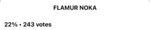 - ndërsa Flamur Noka ka siguruar vetëm 23% të votave, që përkthehet në 243 vota.