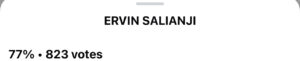 - Ervin Salianji ka marrë 77% të votave ose 823 vota,